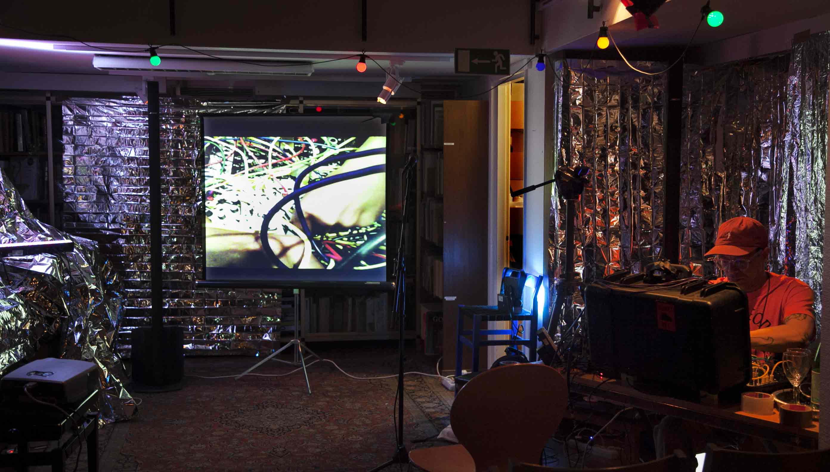At the finissage for the exhibition “Inget att se här!” Jean-Louis Huhta will present magnetoencephalography (MEG) recording made using 306 sensors that picked up his brain’s magnetic activity, while he was falling asleep. The recording was done by neuroscientist Stephen Whitmarsh, who then analyzed oscillatory activity in several frequency bands (theta, alpha and beta), reflecting shifts in Huhta’s focus, attention and relaxation. Jean-Louis will use open-source software and hardware to transform these fluctuations of brain activity into control voltages, which he will use to control his modular synthesizer.