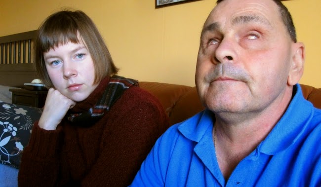The installation is made up of two videos where the two discuss and work together. They take turns filming and drawing and describing the world to each other. Nettelstad also shows a series of drawings that Eckebrink has drawn from verbal descriptions that she has given him of her own abstract work.