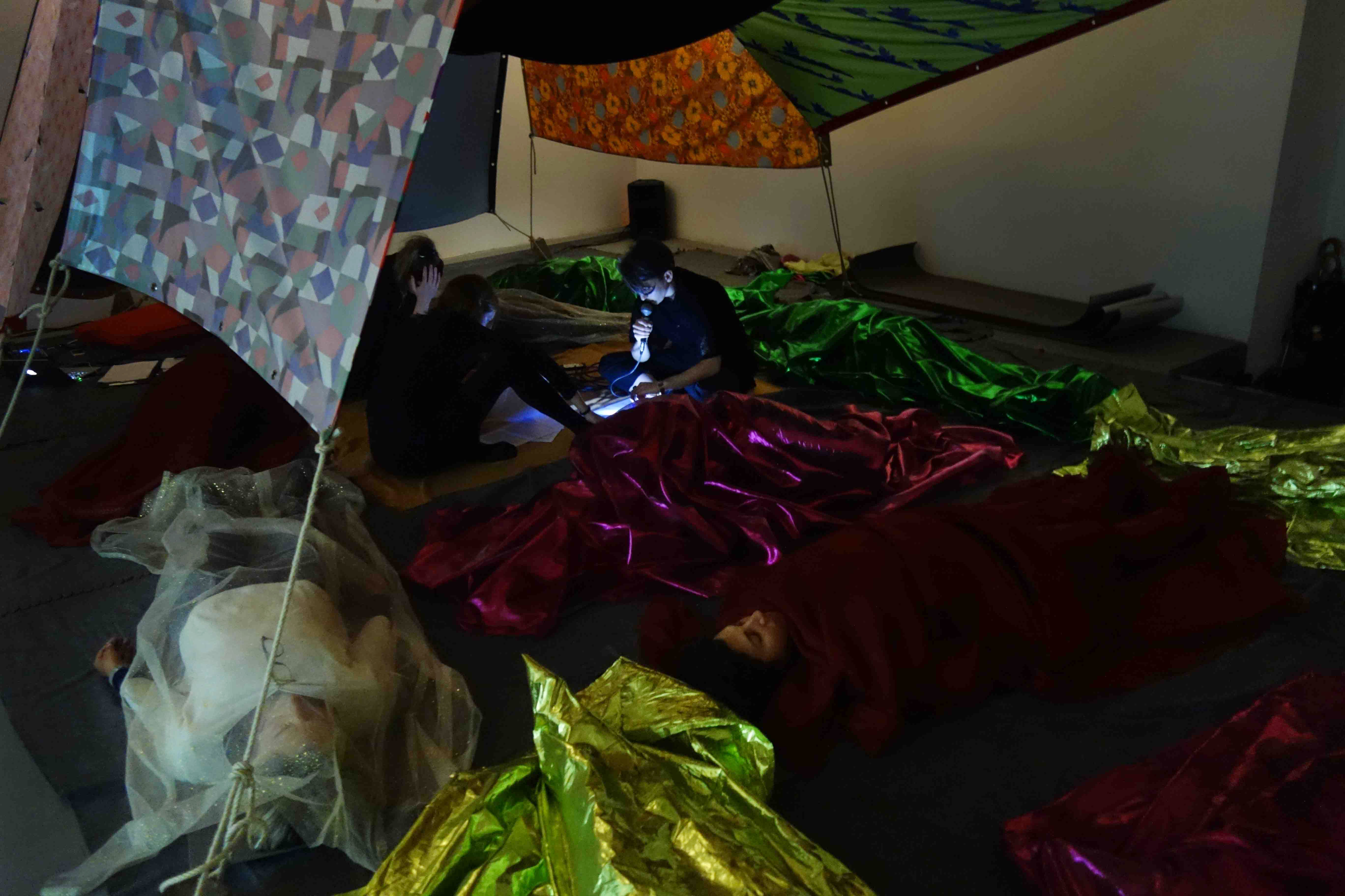 Start in the Middle is a performance that investigates how constraints can open potential and shape human lives and artistic activities. The performance mix the formats of lecture and meditation into a seamless whole to reflect on these questions. The artists use sounds, lights, images and meditative texts to invite the audience to participate in a collective journey in order to find hidden pleasure and beauty in their every day. They use simple exercises so that the audience can relax and think about their life situation in novel ways