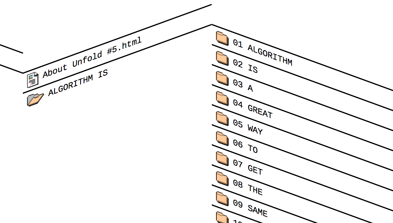 Algorithm is is the result of a collaboration with popular communication softwares and search engines. Choosing from the predeteremined choices given by these tools, the artists were led to a compilation of words and videos bordering DADAist poetry. Unveiling the gosthly hands of alghorithms, this Unfold confronts us with altered notions of agency and freedom in relation to knowledge production and circulation in the digital idealogy.